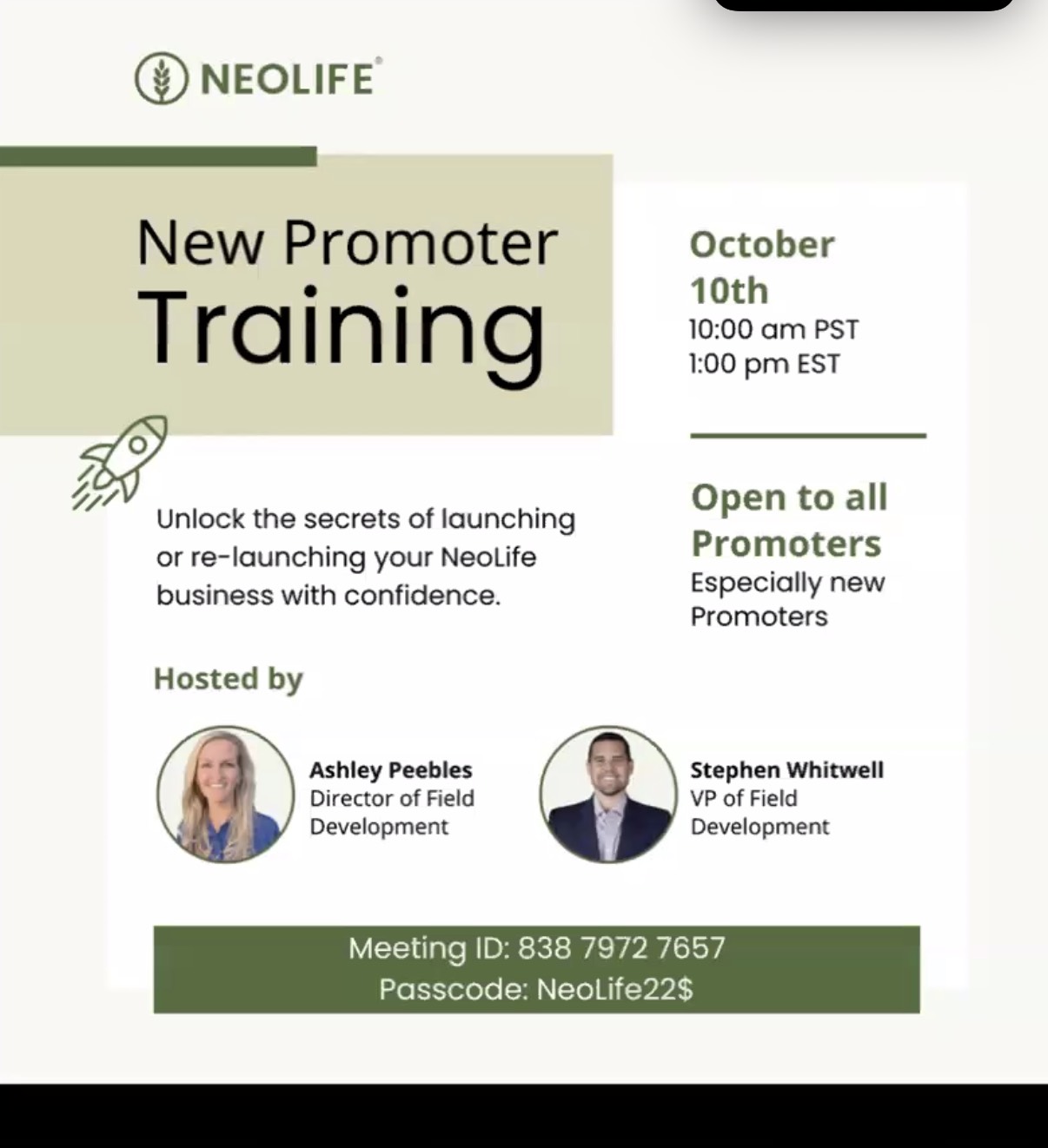 New Promoter TrainingOctober 10th • 10:00 am PST / 1:00 pm EST Learn how to build a thriving NeoLife business and connect with others who share your goals and passion for making a difference. Join us for an inspiring session hosted by Ashley Peebles and Stephen Whitwell as they share practical tips, proven strategies, and […] |