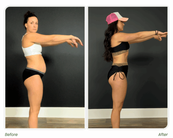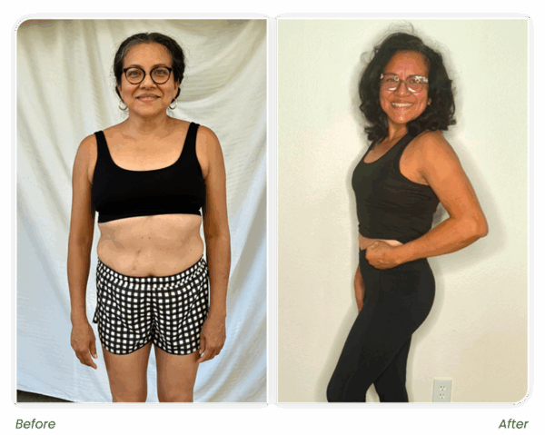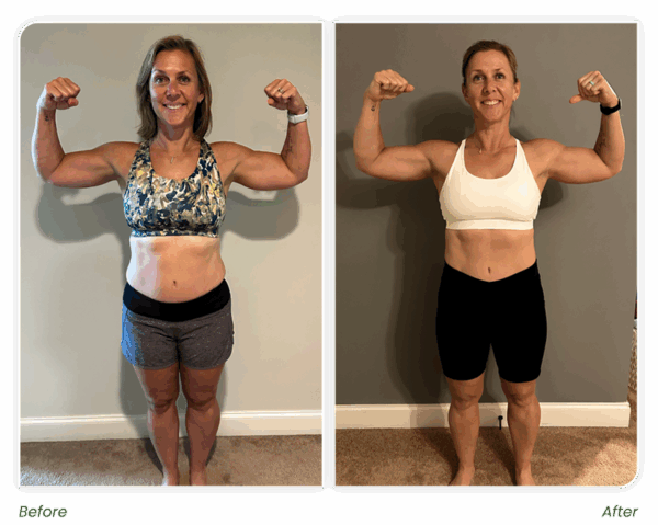 Through consistency in movement, mindful nutrition, and daily supplementation with Glucose Balance, Core3, Omega-3 Plus, Feminine Herbal Complex, and the All Natural Fiber Food & Drink Mix she rebuilt her resilience, and the results followed: 3% body fat lost, 3 lbs of muscle gained, and 5 inches trimmed.*†